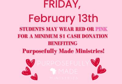 Wear RED or PINK TO BENEFIT Purposefully Made Ministries this Friday!